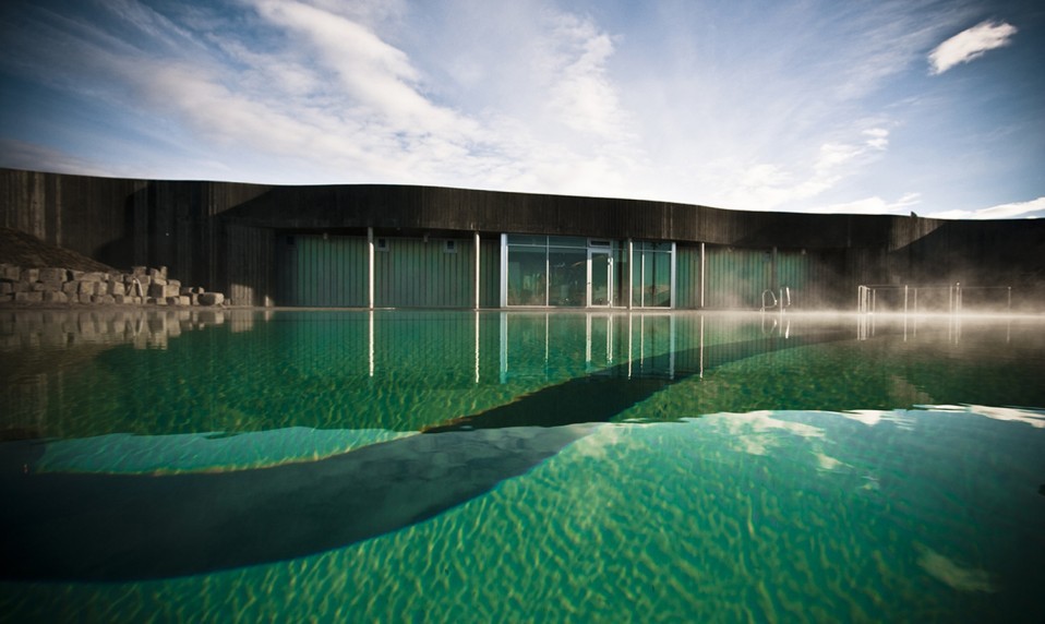 Yapı kompleksi; soyunma alanları, yüzme havuzu ve iki adet jakuzi içermektedir. Ana yapı, yerinde dökme beton kullanılarak inşa edilmiş ve endüstriyel cam elemanlarla kaplanmıştır. Bu endüstriyel camlar yarı saydam özelliktedir; gün ışığının içeri süzülmesine izin verirken, içeriyi dışarıdan görünmez kılar. Bu özellik, özellikle soyunma alanlarında özel bir atmosfer ve konfor sağlamaktadır. Zemin kaplamalarında ise el yapımı İzlanda taşları kullanılmıştır.